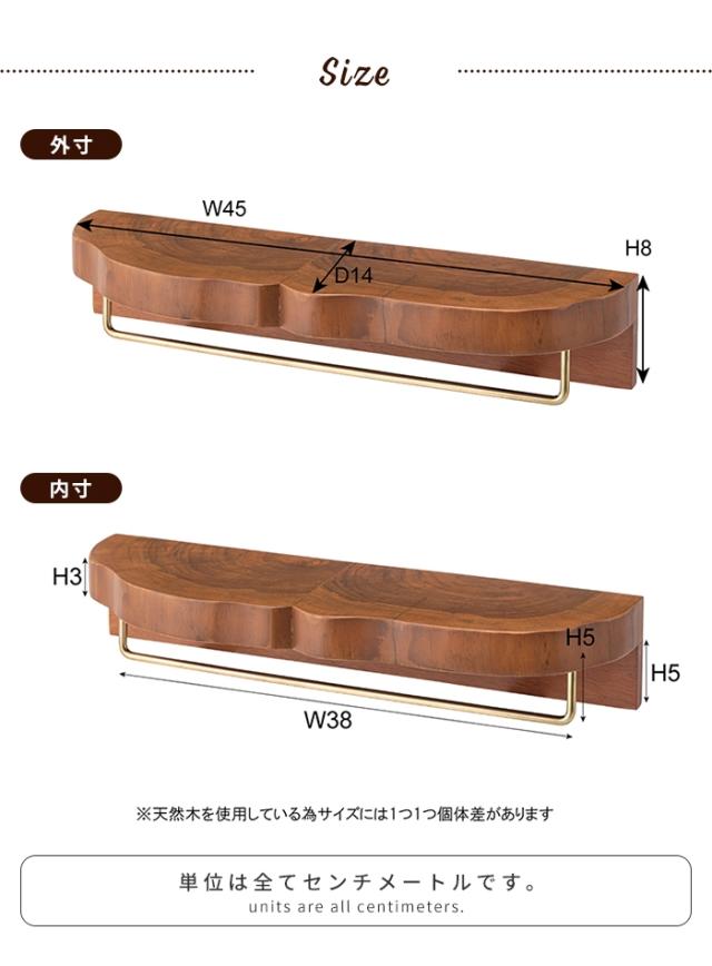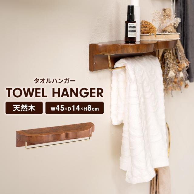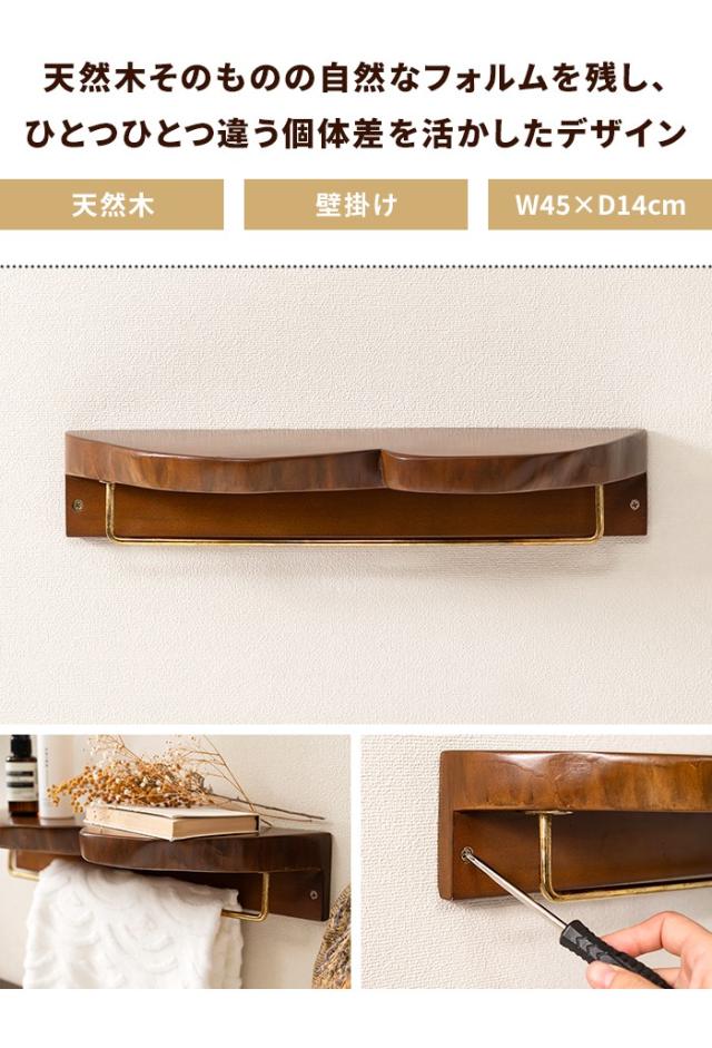 【値下げ】タオルハンガー タオル掛け 天板付き 木製 天然木 壁掛け棚 ウォールシェルフ 棚 壁 取り付け 飾り棚 ウォールラック 幅45 奥行14 壁面収納 収納 DIY インテリア 北欧 おしゃれ
