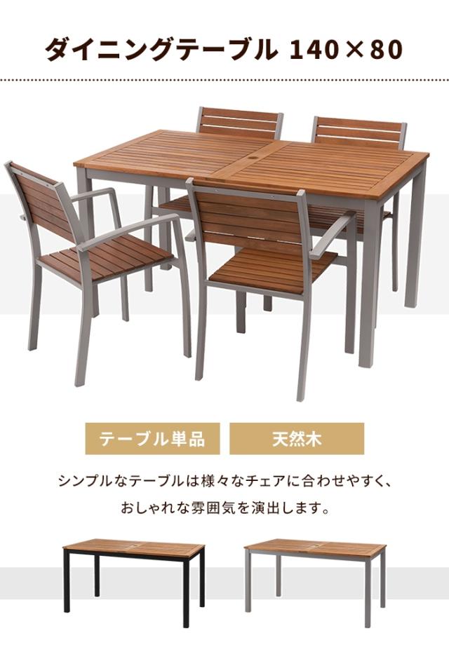 | オリー ダイニングテーブル 天然木 ユーカリ 木製 木目 ガーデン ガーデンテーブル 庭 屋外 テラスベランダ アルミ パラソルホール アジャスター かわいい おしゃれ ブラック 黒 グレー 灰 幅140 奥行80 高さ74 四角 長方形 角型 4人 |