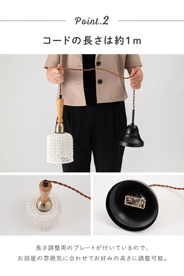 | シェードが陶器製のおしゃれなペンダントライト。 消灯時にはなめらかな陶器のデザインを楽しめ、点灯時は優しい光でぬくもりのある空間を演出します。 エジソン球が1個付いているので、届いたその日から使えます。 LED電球対応。 コードの長さは約1m。長さ調整用のプレートが付いているので、お好みの高さに調整可能。 |