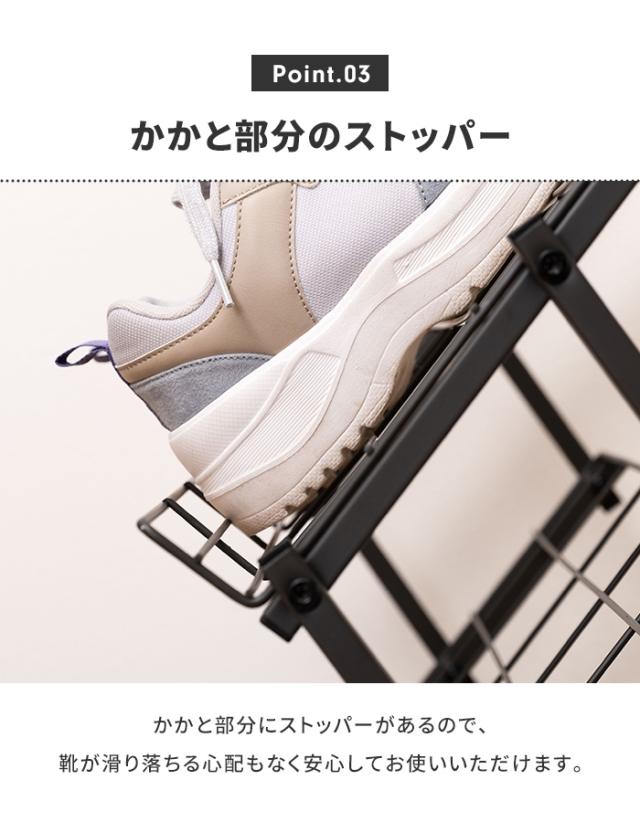 折りたたみ可能で、省スペースなシューズラック。
