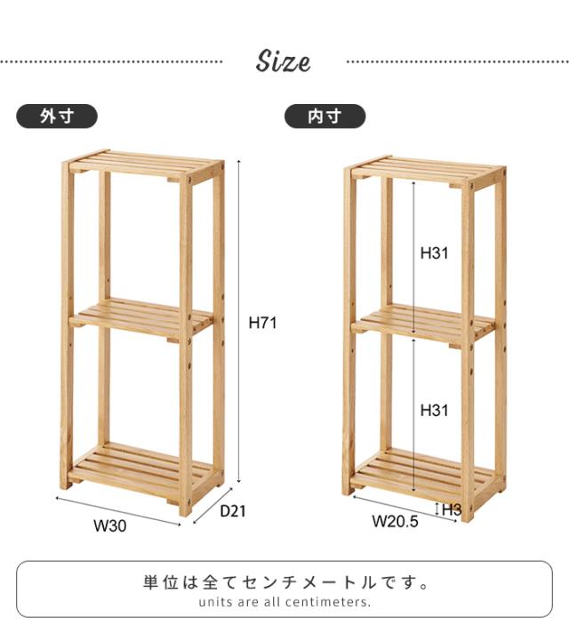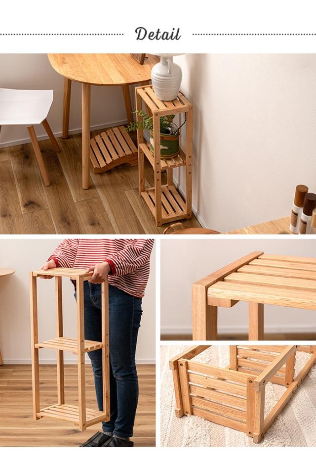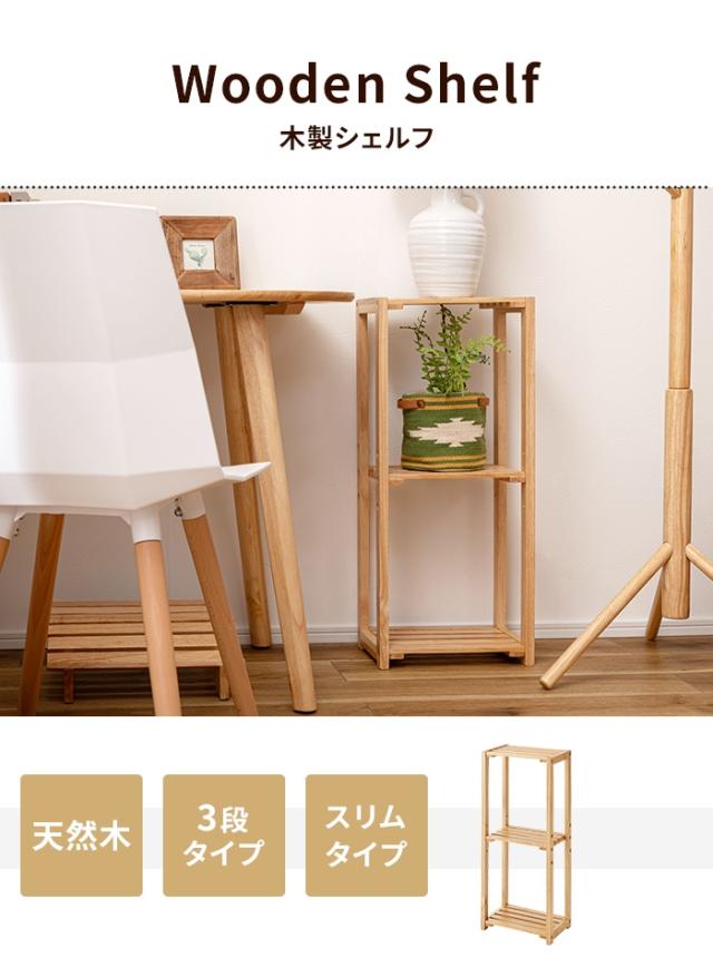 【値下げ】スリムシェルフ 収納棚 3段 木製 ラック 幅30 奥行21 オープンタイプ ディスプレイ 天然木 隙間収納 ナチュラル おしゃれ