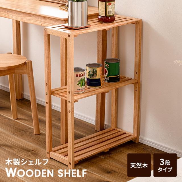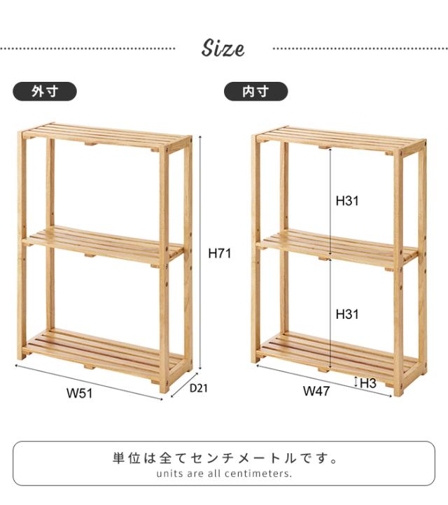 【値下げ】ワイドシェルフ 収納棚 3段 木製 ラック 幅51 奥行21 オープンタイプ ディスプレイ 天然木 隙間収納 ナチュラル おしゃれ