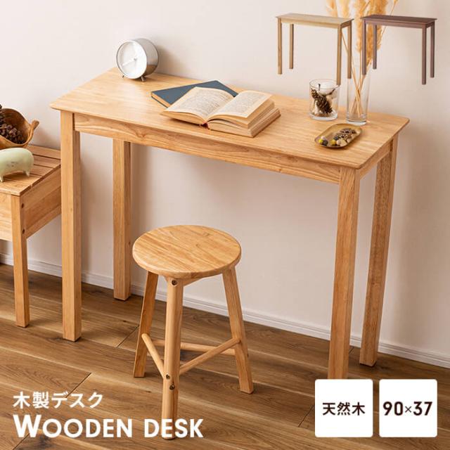 デスク PCデスク 天然木 幅90 奥行37 高さ73 スリム 作業デスク テーブル 北欧風 ナチュラル おしゃれ コンパクト