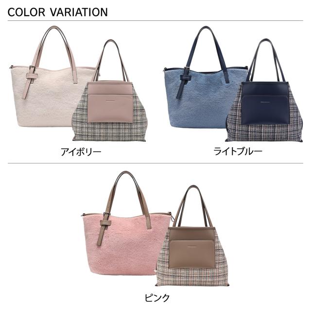 ファーにツイードと、女性の欲しいを詰め込んだ、リバーシブル仕様のラージトートバッグぬくもり感のあるファー素材とツイード素材は、秋冬のファッションに欠かせない素材が両方楽しめるリバーシブルのラージトートバッグが登場!サイズ感は、横置きでA4サイズ、タブレットなどが収納可能な容量を実現。持ち手部分に段階で長さ調整ができる仕様になっている為、服を選ばずに肩掛け持ちができるので便利です!