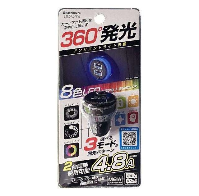 カシムラ DC-4.8A-USB 2ポート アンビエントライト付き DC-049