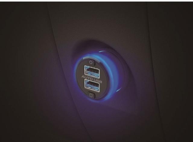 DCソケット周辺をレインボーカラーで照らす!アンビエントライト内蔵DC-USB 7色発光のチップLEDを8個内蔵し、ボタン操作でお好みの発光色に調整可能 向きを気にせず挿し込めるリバーシブルUSB採用