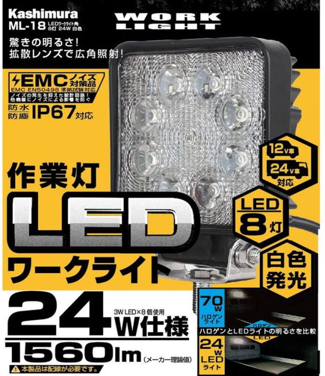 カシムラ LEDワークライト角 8灯 24W 白色 ML-18【送料無料】