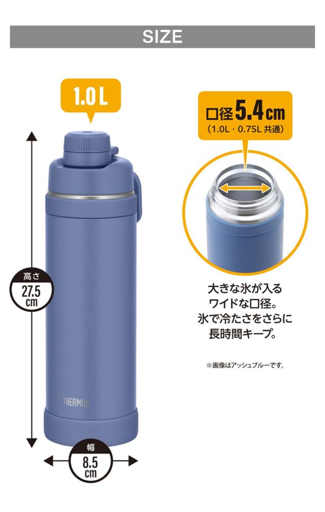 ※保冷効力とは、室温20℃±2℃において製品に4℃以下の水をキャップユニット下端まで満たし、水温が4℃±1℃のときからキャップユニットを付けて縦置きした状態で6時間放置した場合におけるその水の温度です。