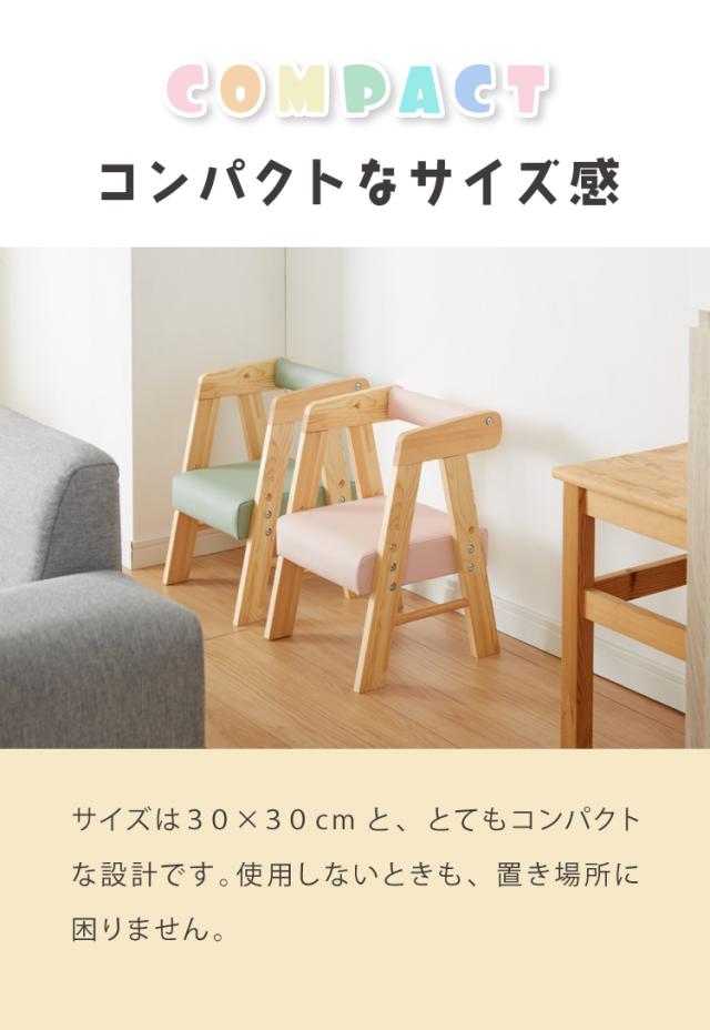 キッズチェア 木製 座面PVC 高さ調節可能 肘付き ロータイプ 天然木 子供用椅子 コンパクト 省スペース 軽量 子ども こども キッズ お子様 チェア ローチェア かわいい(代引不可)【送料無料】
