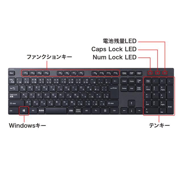 サンワサプライ ワイヤレスキーボード コンパクト 薄型キー 浅ストローク アイソレーションキーボード LED テンキー ミニサイズレシーバー SKB-WL39BK 【メーカー直送】(代引不可)【送料無料】
