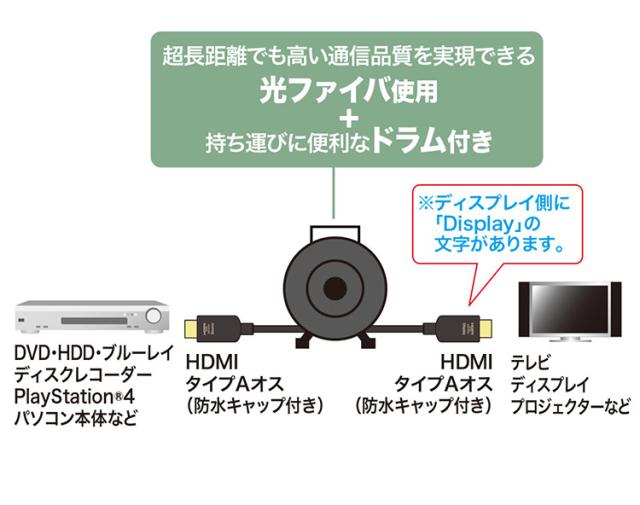 サンワサプライ ドラム付き光ファイバHDMIケーブル (8K対応) 50m HDMIケーブル DVD ハードディスク パソコン テレビ プロジェクター 敷設 収納 回転式ドラム HDR KM-HD20-UFBD50 【メーカー直送】(代引不可)【送料無料】
