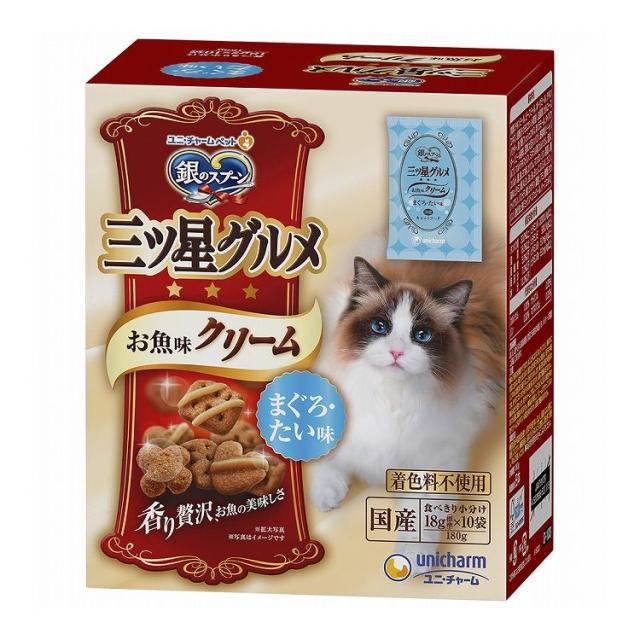 【12個セット】 ユニチャーム 銀のスプーン 三ツ星グルメ お魚味クリーム まぐろ・たい味 180g【送料無料】