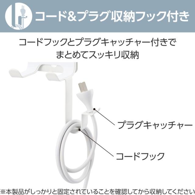 ■プラグを固定できるフック付きで、まとめたコードが解けずきれいに収納できます。