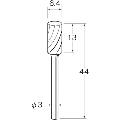 ●刃径(mm):6.4●刃長(mm):13●軸径(mm):3●タイプ:ロー付●最高使用回転数(rpm):26000●全長(mm):44