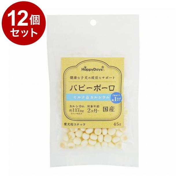 【12個セット】 ペットプロ HappyDays パピーボーロ ミルク&カルシウム 45g 国産 日本製 犬用 犬 おやつ スナック ボーロ【送料無料】