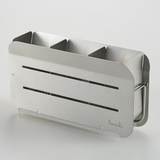 燕三条の職人が時間と手間をかけ、ひとつひとつ丁寧に作り上げているステンレス製の水切り用箸立てを、毎日の快適な食器洗いにお役立てください。本体側面にhanautaのブランドロゴがあしらわれた、おしゃれなデザインも魅力です。