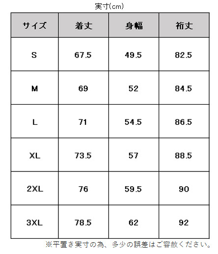 サイズ:身長 / 胸囲 / 胴囲