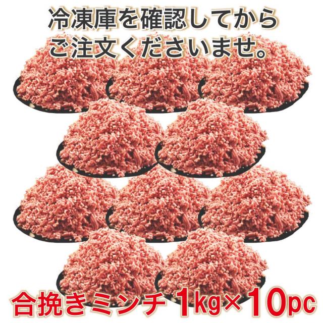 【送料無料】大容量 合挽き ミンチ 10キロ(1kg×10pc) 牛60% 豚40% 肉 業務用 簡易パッケージ 牛肉 豚肉 肉 メガ盛り 餃子 ハンバーグ 麻婆豆腐 カレー 肉団子 豚ミンチ 挽き肉