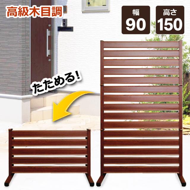 【ブラウン】ALMAX アルマックス オレフェンス 【特許取得】 アルミ たためる フェンス 幅90×高さ150 木目調 ラティス DIY OF-0915