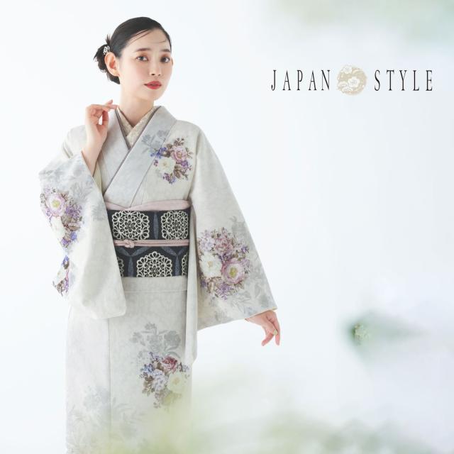 JAPAN STYLE 訪問着 レンタル 着物レンタル 貸衣装 フルセット 【画像の帯がセット】 入学式 卒業式 七五三 結婚式 お宮参り 結納 お茶会 パーティー 母親 ママ 人気 訪問着レンタル 付下げ フルセットレンタル 白 グレイ グレー 和モダン No.0329