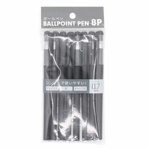 ボールペン 黒 ボール径0.7mm 8本入 (100円ショップ 100円均一 100均一 100均)
