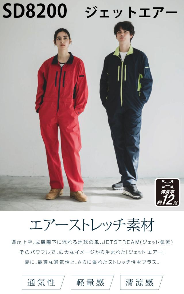 サンディスク SUNDISK 長袖ツナギ SD8200 4L〜B3L 大きいサイズ モビリティカット ストレッチ 伸長率約12% ラグラン袖 帯電防止 国内染色 春夏 続服 つなぎ 作業服 作業着 男女兼用 ユニセックス 日の丸繊維