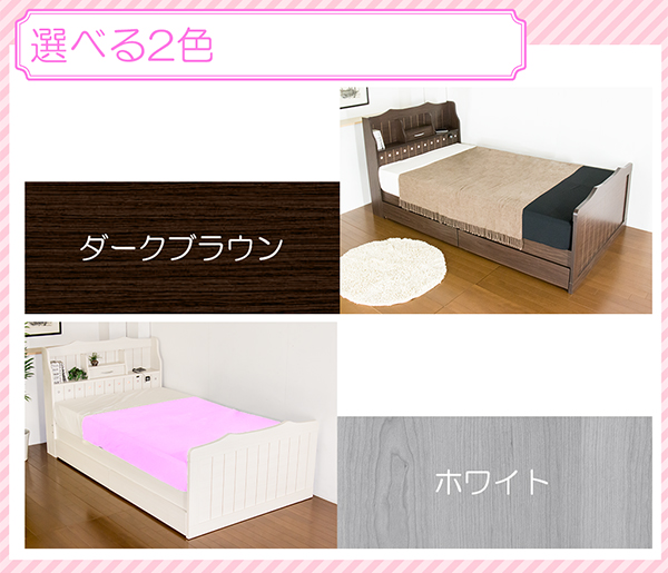 ベッド セミダブル 【日本製】 棚 コンセント 照明 引き出し 付き カントリー調 SGマーク付国産ボンネルコイルマットレス付(代引不可)【送料無料】