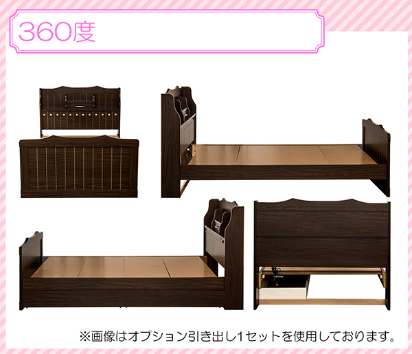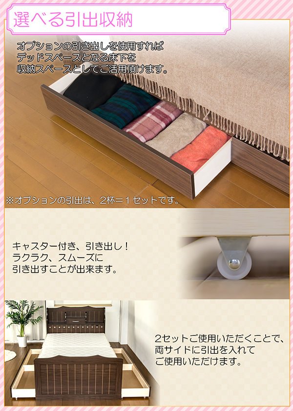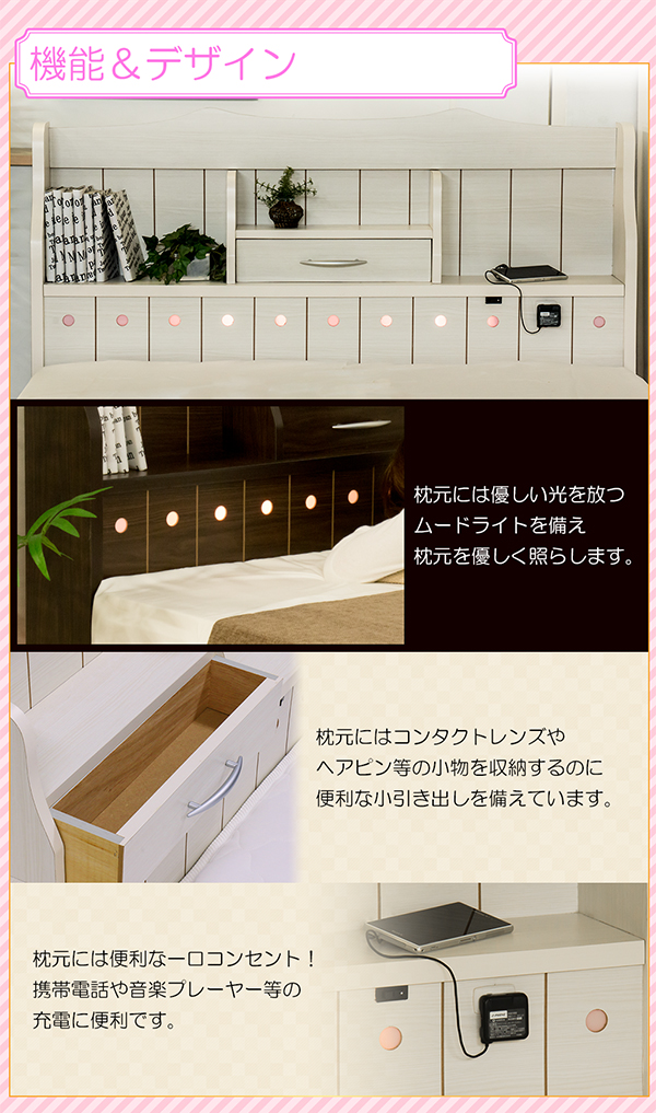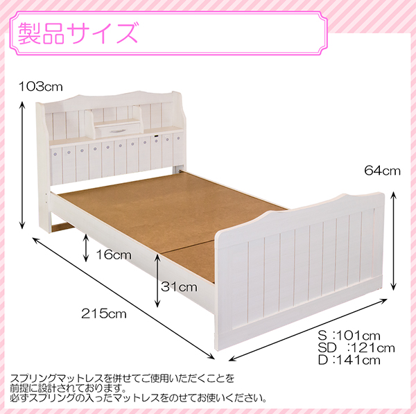 ベッド ダブル 棚 コンセント 照明 引き出し 付き カントリー調 二つ折りボンネルコイルマットレス付(代引不可)【送料無料】