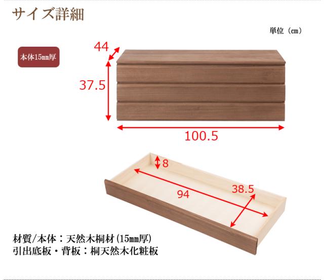 ■商品の仕様/本体:天然木桐材(水性塗装仕上げ)、引出し底板・背板:天然木桐化粧板