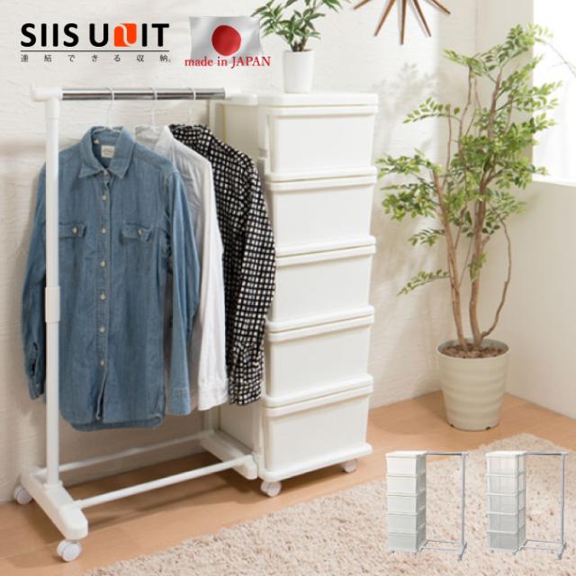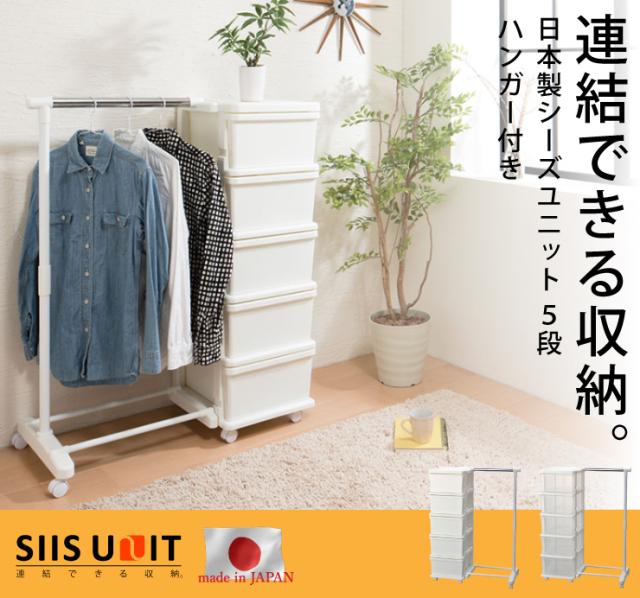 日本製 収納ボックス 引き出し 収納ケース プラスチック 引き出し 【SIIS UNIT】シーズユニット5段 ハンガー付 (代引不可)【送料無料】