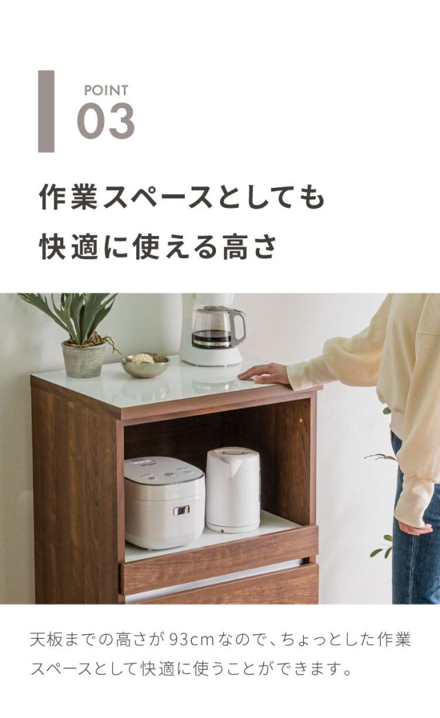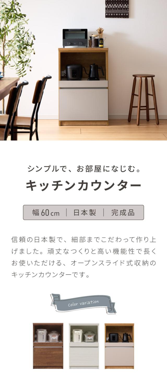 キッチンカウンター 60 幅60 高さ93 オープンスライド 完成品 国産 日本製 大川家具 レンジ台 カウンター テーブル 食器棚 キッチンボード 引き出し 大容量(代引不可)【送料無料】