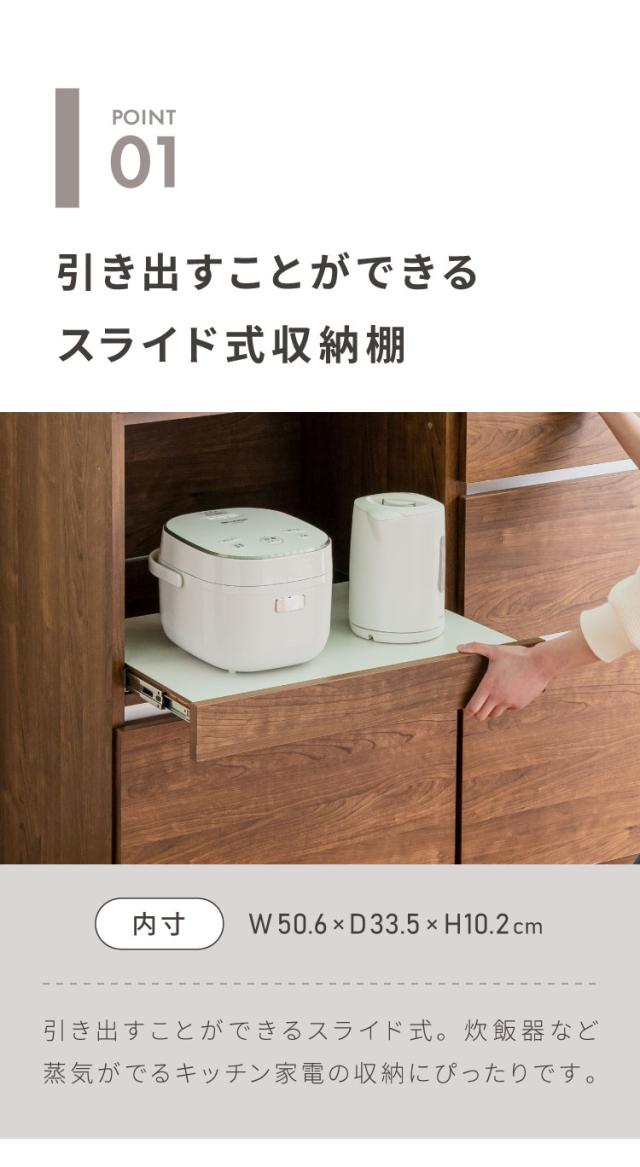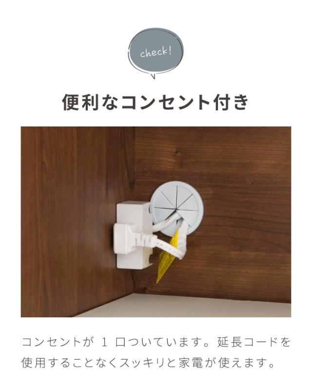 1口コンセント付きで炊飯器やケトルなどの収納に使用できます!
