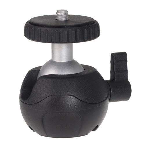 最大で小型一眼レフ・ミラーレス機等に対応する自由雲台。監視カメラ・各種計測器やセンサーなど、三脚ネジ穴を備えた小型機器の固定にも余裕の対応。