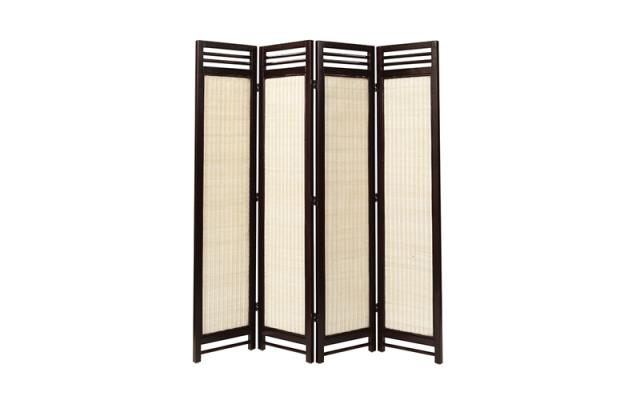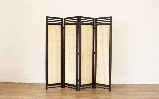 天然木のフレームにラタンの編み込みが美しいスクリーン。4連タイプ。