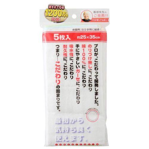 のり付け加工をしていないので使う時にのりを落とす手間がなくなり、最初からやわらかい使い心地。【特長】・丈夫な綿ガーゼを約7枚重ねているので、やぶれにくく丈夫です。・漂白剤にも強く、吸水性が優れているのでプロの方が使用しても納得の商品です。・縁の糸の色を5色別々にしているので、用途で使い分けも出来て便利です。