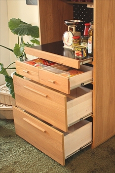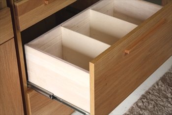 引出しにはたくさんのカトラリーやランチョンマット、その他小物がたくさん入るスペースが確保されています。