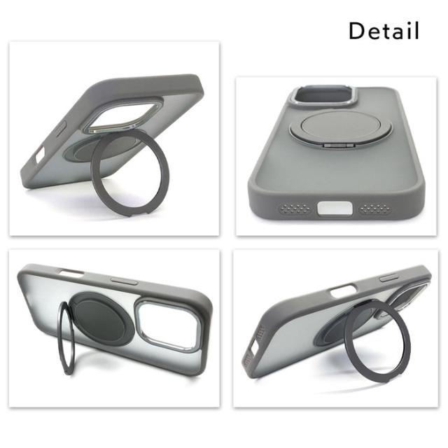 iPhone16 16ProMax スマホケース グレー TPU素材 ソフトケース ワイヤレス充電 MagSafe 回転スマホリング スタンド機能 落下防止 2way 多機能 便利 かっこいい