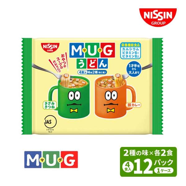 日清食品 マグうどん きざみきつね 豚カレー 4食入×12パック(1ケース) 栄養機能食品 うどん インスタント やさしい味つけ 2種類の味 1食約65円