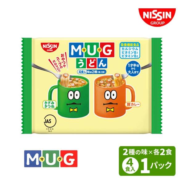 日清食品 マグうどん きざみきつね 豚カレー 各2食セット 栄養機能食品 うどん インスタント やさしい味つけ 2種類の味 4食入 1食約65円