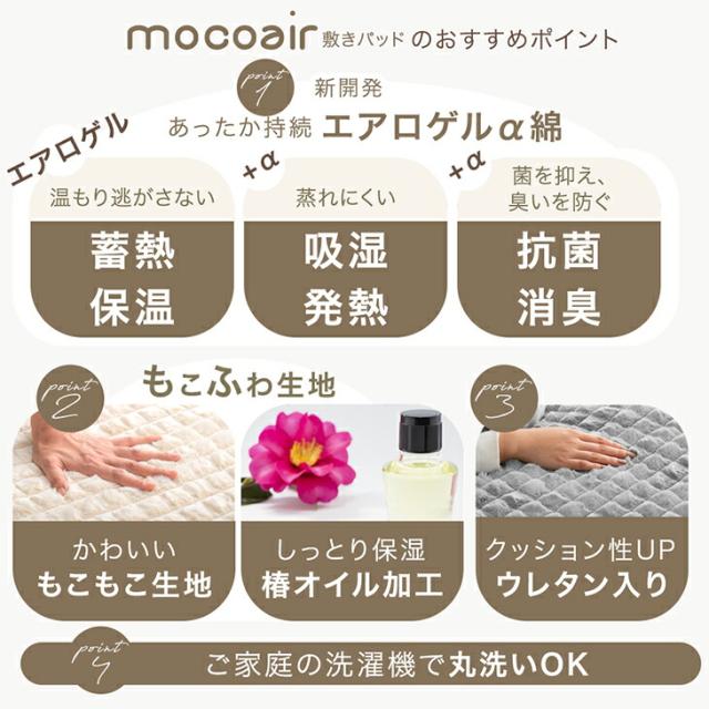 【正午〜P5%還元】 【在庫一掃プライス】 新素材“エアロゲルα” 敷きパッド セミダブル 洗える 秋冬用 mocoair あったか 暖か 保温 暖かい 冬用 冬 厚手 敷き毛布 敷パット 敷きパット 軽い 丸洗い ベッド おしゃれ 北欧
