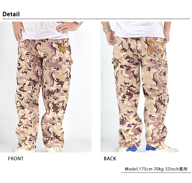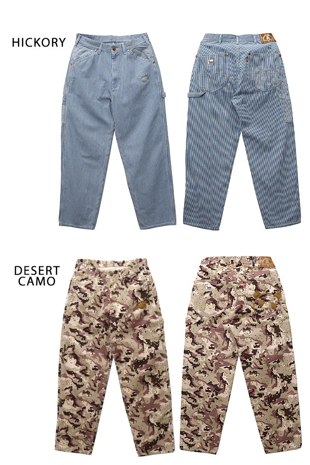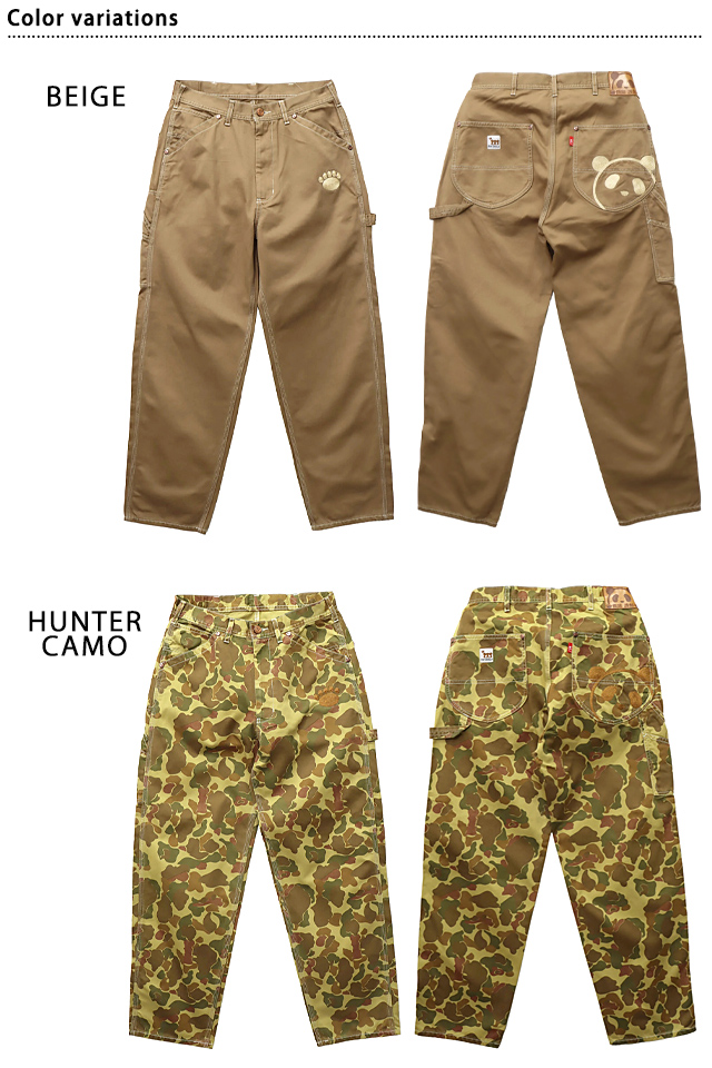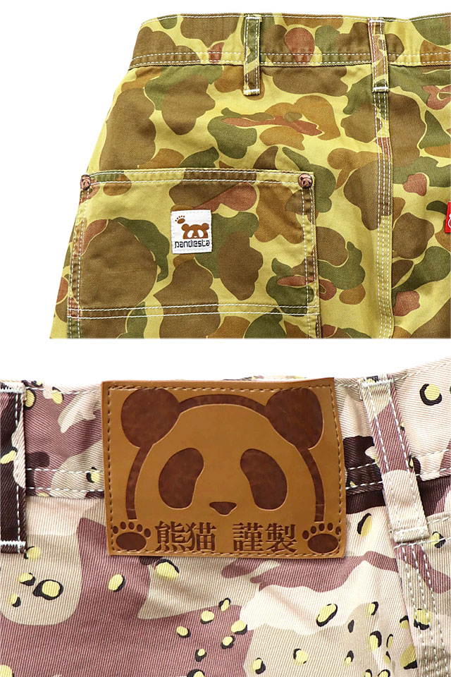 和柄ブランド【錦】の姉妹ブランドとして誕生した、お茶目なパンダをモチーフとした【PANDIESTA JAPAN】より「熊猫謹製ワイドペインターパンツ(564650)」のご紹介です。 今や、錦の定番モチーフとなった「錦PANDA」!! 今回は、異なる4種類の素材をラインナップに、ワイドシルエットのペインターパンツをリリース。 アメカジやミリタリーで人気のある4種類の素材を用意させていただきました。 昨今トレンドとなる、ワイドシルエットを用いたペインターパンツになります。 アメカジコーデからは人気のコットンツイルや定番のインディゴヒッコリーを、ミリタリーコーデからは合わせやすく普段のコーディネートに取り入れやすいハンターカモにブランド初となるチョコチップ(デザートカモ)をご用意させていただきました。 『ワイドシルエット』は昨今トレンドとなるアイテムの一つで、要所を三本張りステッチで施したペインターパンツを採用しました。 どのカラー共にウオッシュ加工を施しており、ボディ全体にスレやアタリといったヴィンテージの雰囲気を実現した一本になります。 前後にパンディエスタのアイコンと足跡をボディカラーに近い同色糸のチェーン刺繍で施し、様々なスタイリングに取り入れていただけるよう、シンプルな仕様に留めさせていただきました。 また、『熊猫謹製』アイテムとして、定番の熊猫印の革パッチやネオバーボタン、リベットなどは、細部に至るまでオリジナルパーツを使ったこだわりの本格派ボトムスに仕上げております。 長く穿き洗っていただくことで、ヴィンテージ感は増幅され、ご自分だけの経年変化をお楽しみいただけます。 | ||||||||||||||||||||||||||||||||||||||||