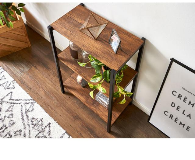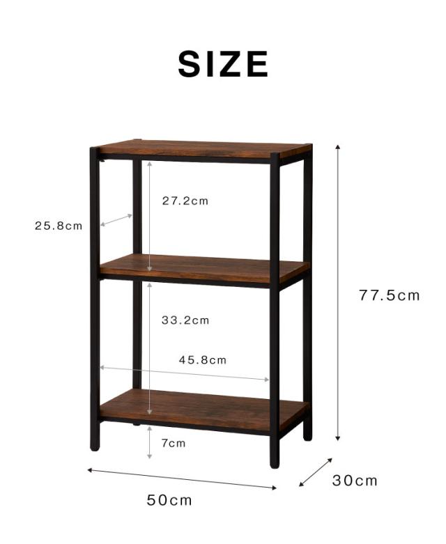 ヴィンテージ 三段ラック 3段 ラック 幅50 奥行き30 収納 オープンラック スチールラック 茶 ブラウン シェルフ 木目調(代引不可)【送料無料】