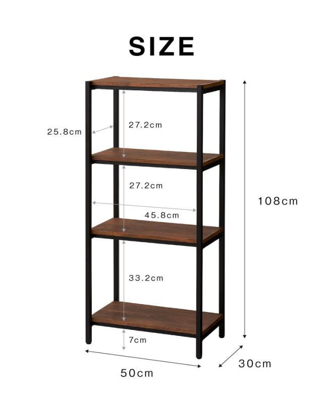 ヴィンテージ 四段ラック 4段 ラック 幅50 奥行き30 収納 オープンラック スチールラック 茶 ブラウン シェルフ 木目調(代引不可)【送料無料】