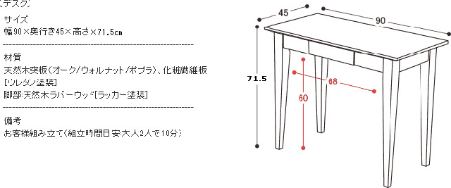 仕様 天板:天然木化粧繊維板 ウレタン塗装