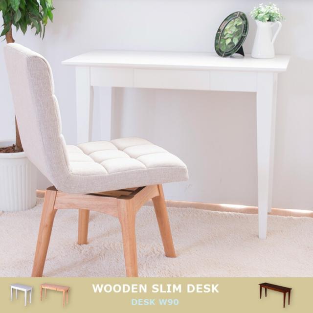 奥行き45cm 木製スリムデスクW90パソコンデスク パーソナルデスク 勉強机 読書机 引き出し 木目(代引不可)【送料無料】