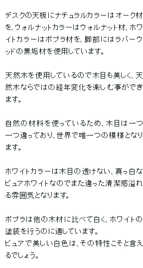 商品説明 ○天然木突板を使用した鮮やかな木目のデスクです。