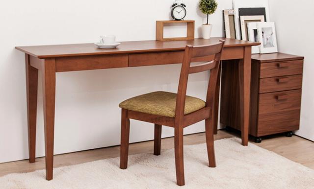 鮮やかな木目のスリムデスク