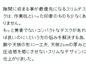 ○ちょっとした隙間にピッタリ♪省スペースデスク。