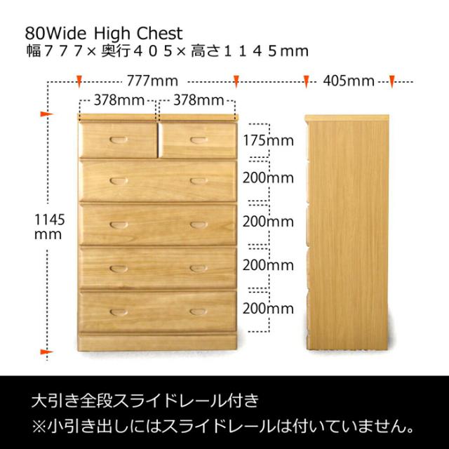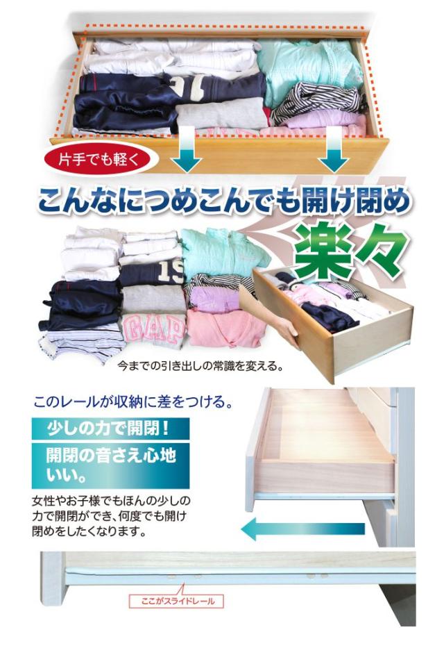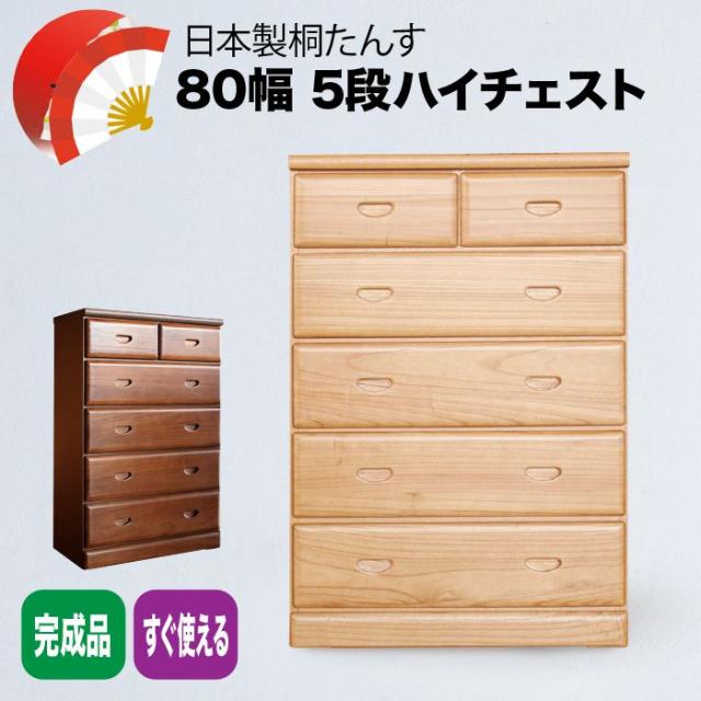 たんす チェスト 完成品 国産 幅80cm 奥行41cm 高さ112cm おしゃれ 北欧 5段 木製 日本製 収納 箱 ボックス スライドレール(代引不可)【