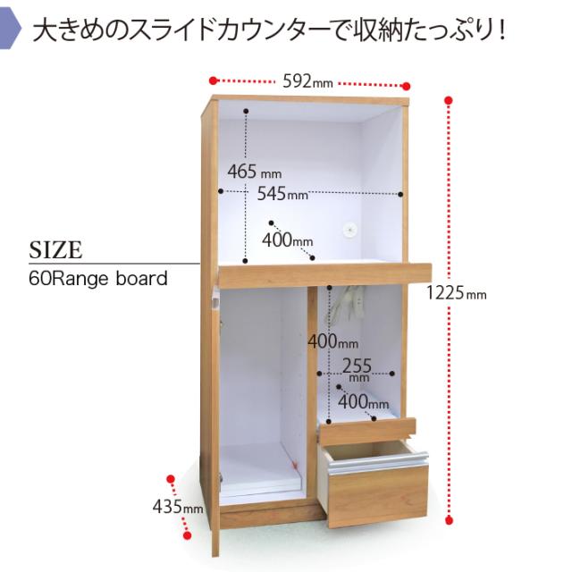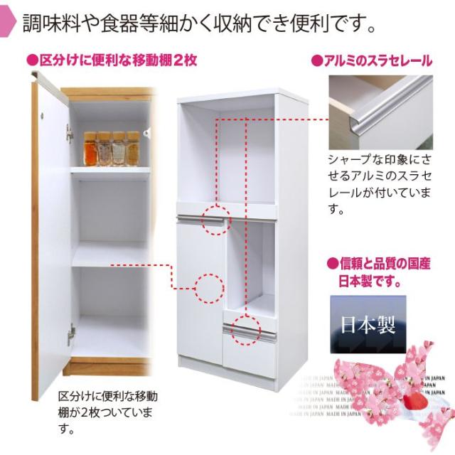 レンジ台 キッチンカウンター 幅60 キッチンボード 60 完成品 国産 間仕切り レンジボード 収納 北欧 おしゃれ スリム(代引不可)【送料無
